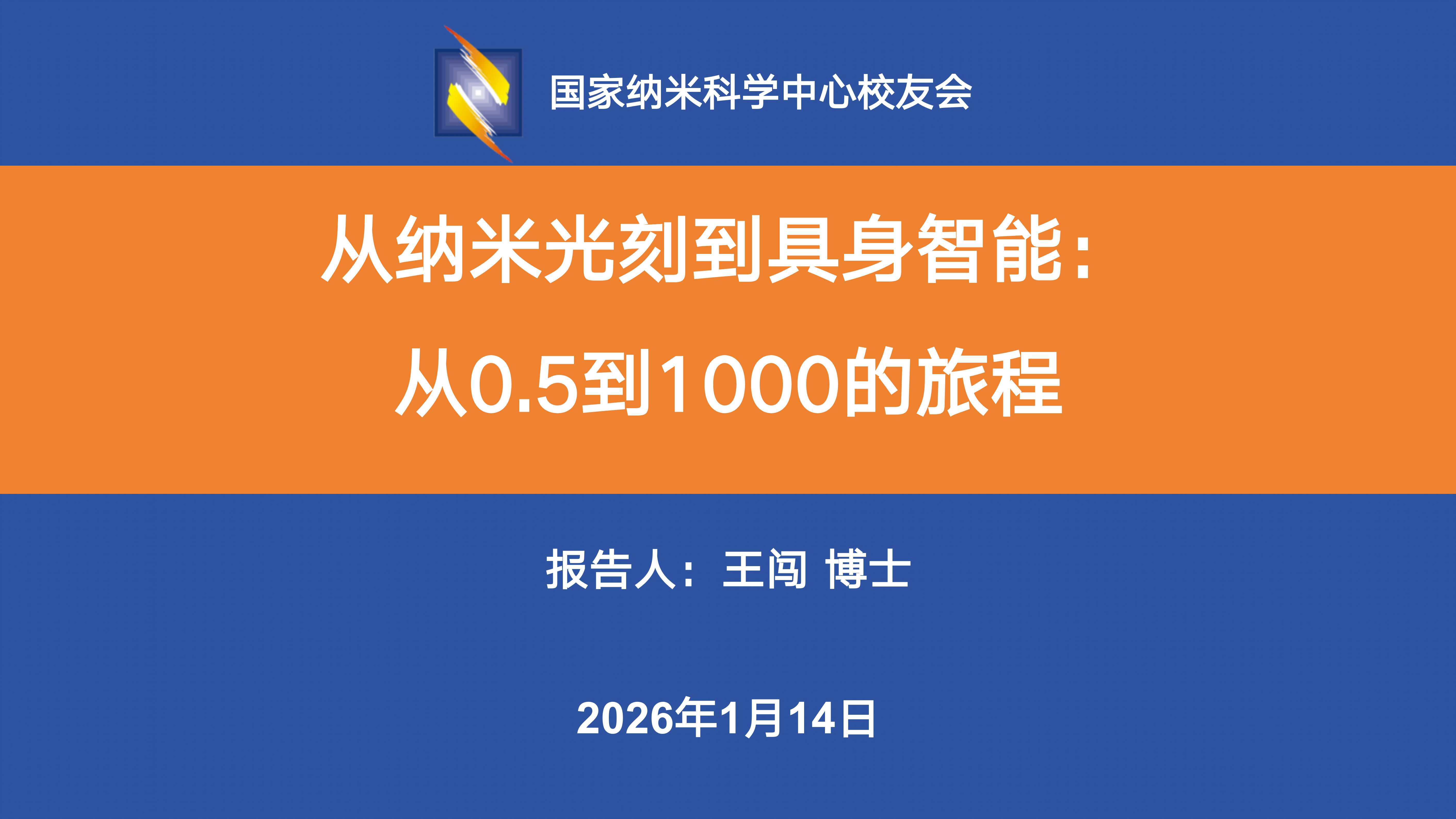 2026年1月14日下午,教育处特邀2017届校友、智元机器人联合创始人、高级副总裁王闯博士在线分享主题为“从纳米光刻到具身智能:从0.5到1000的旅程”。